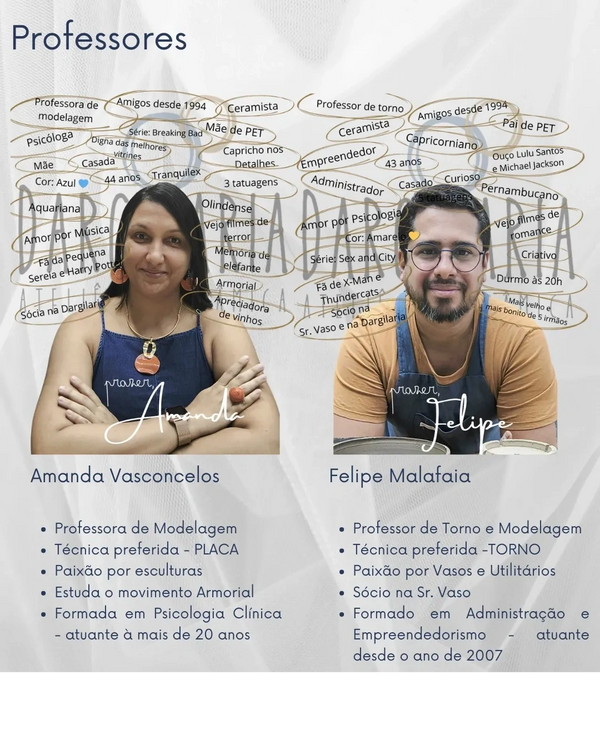 🔹 Felipe Malafaia (@felipefmalafaia) – Administrador e Ceramista experiente, especializado em torno e modelagem.
